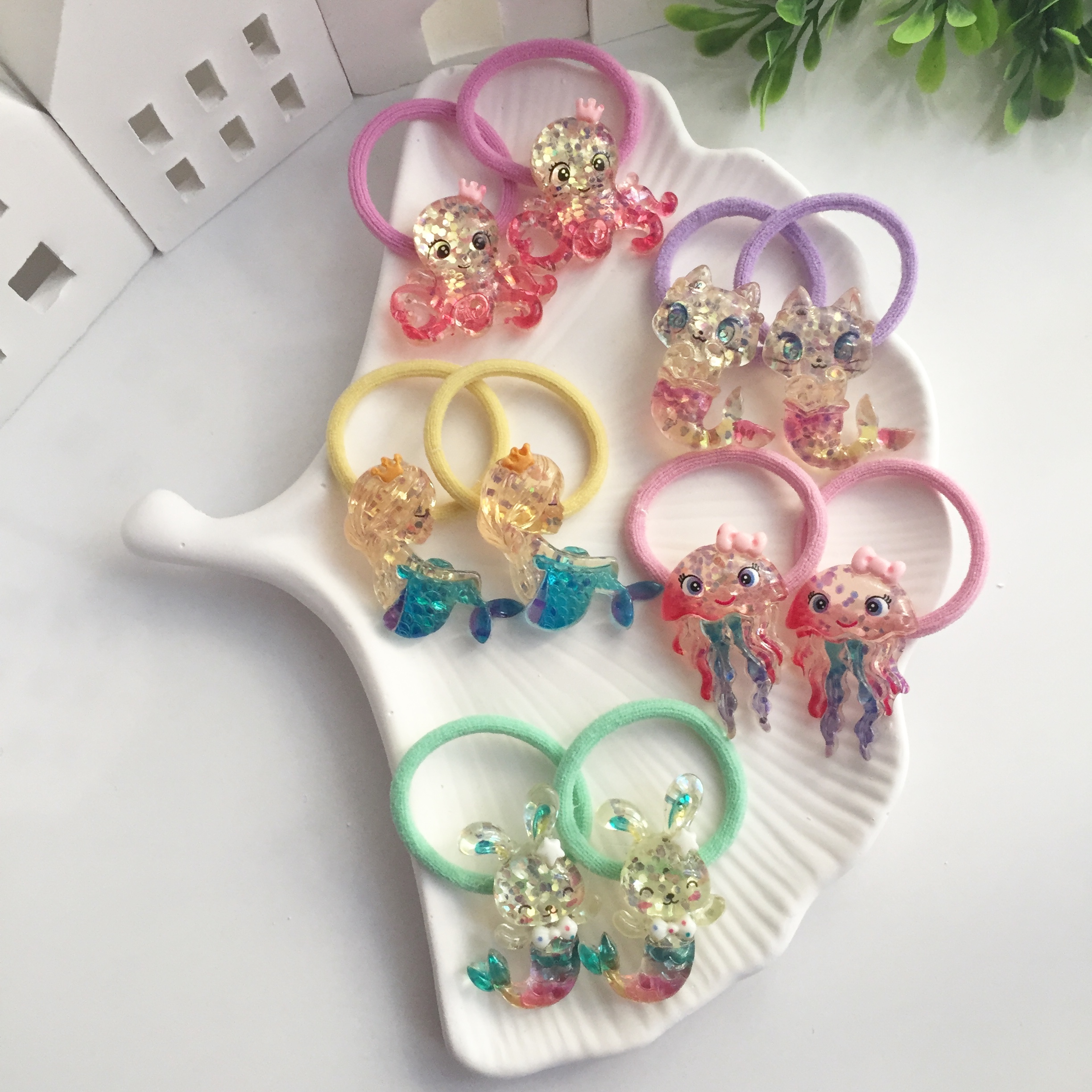 Deniz Hayvanları Cam Görünümlü Çiftli Lastik Toka