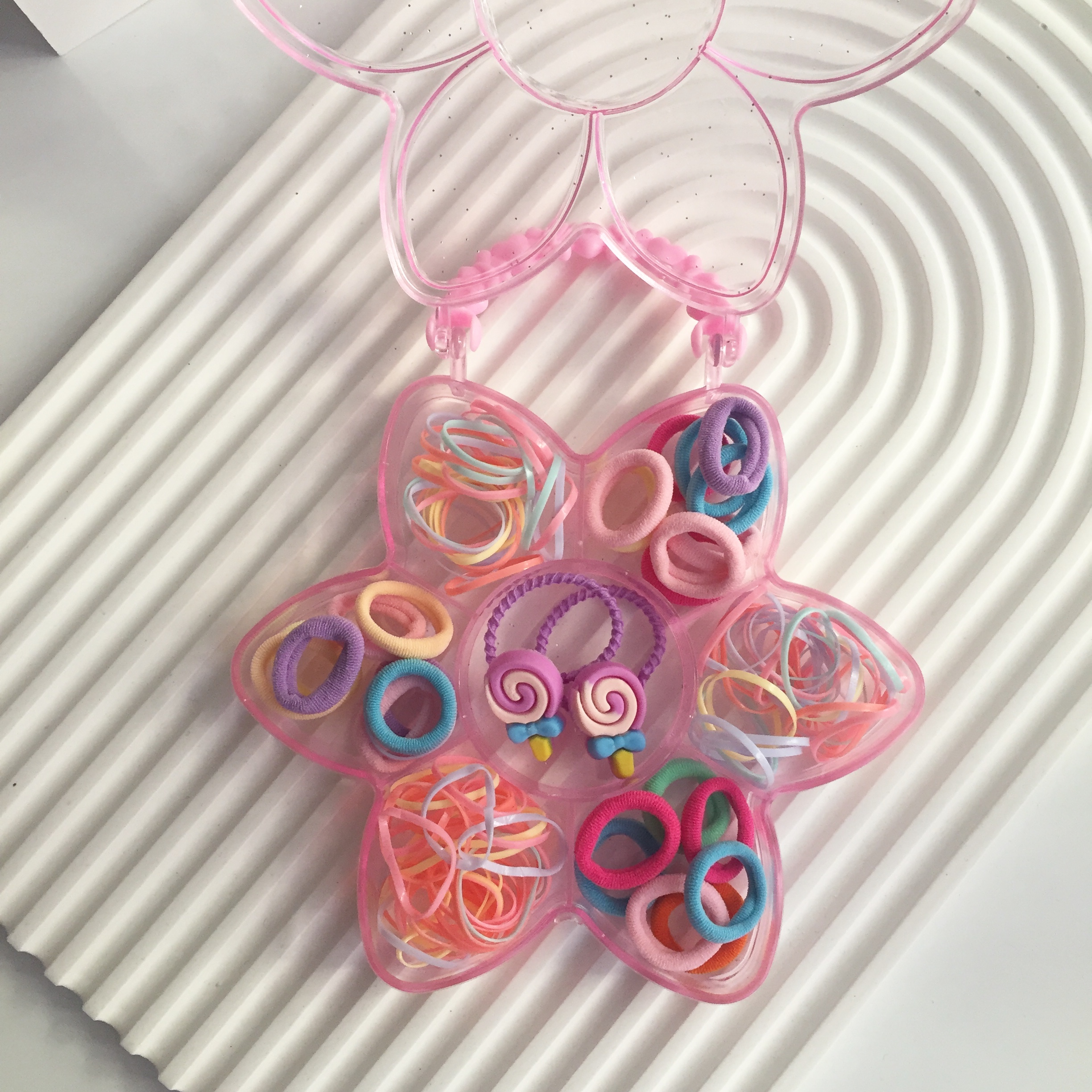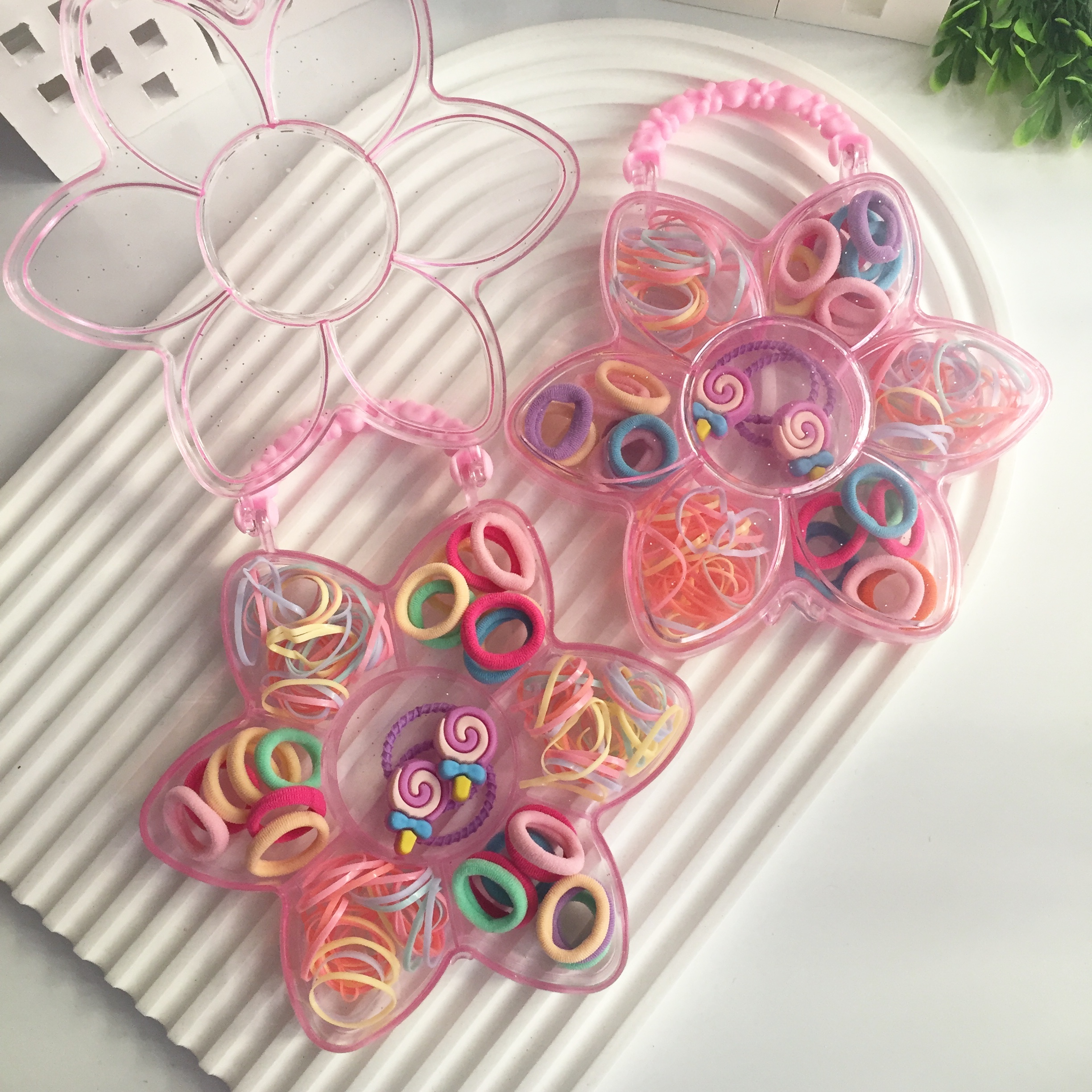 Farklı renklerde lastik tokalardan oluşur